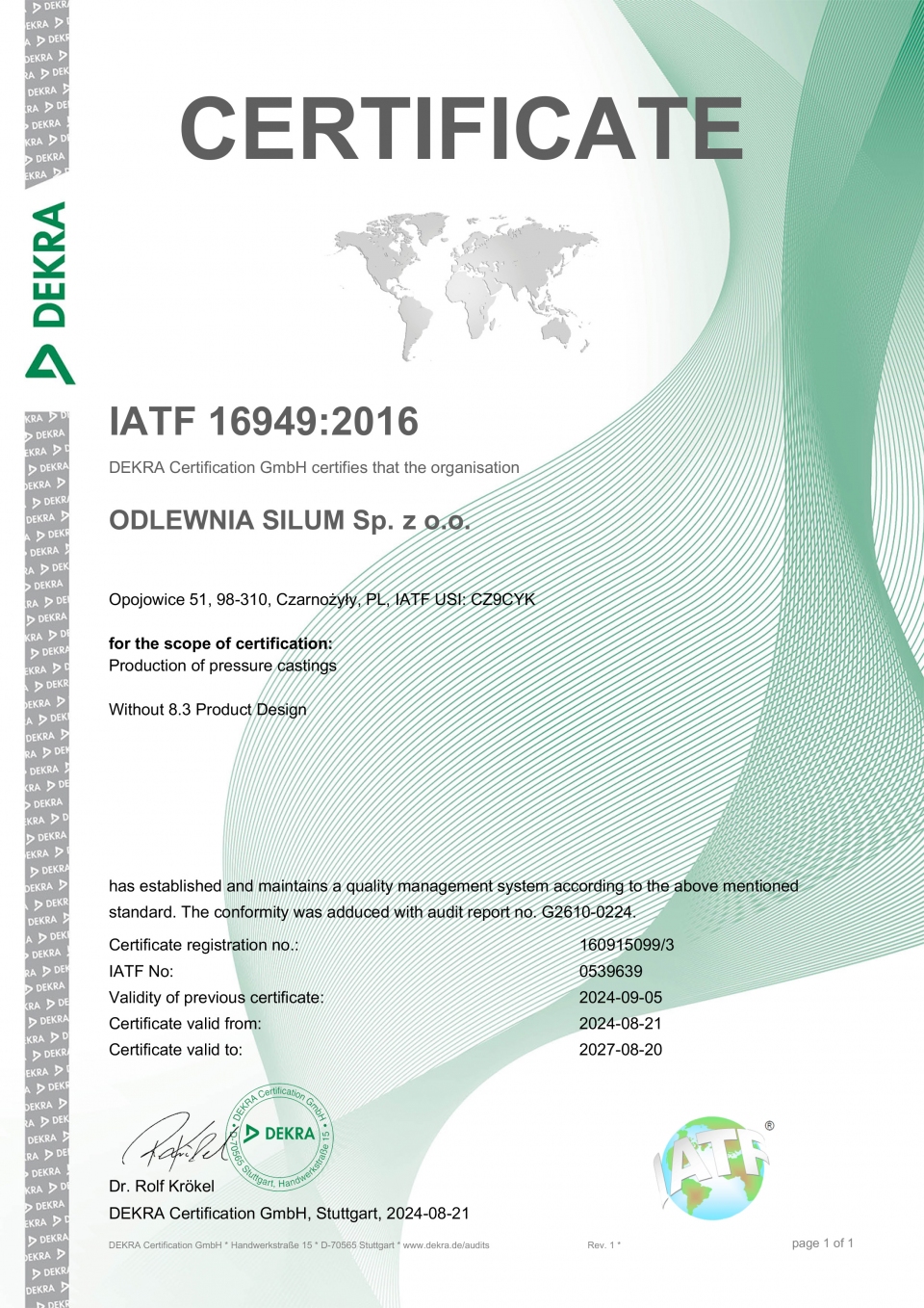 Certyfikat IATF - Odlewnia SILUM