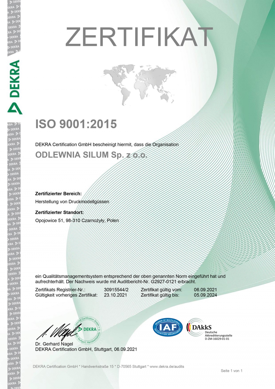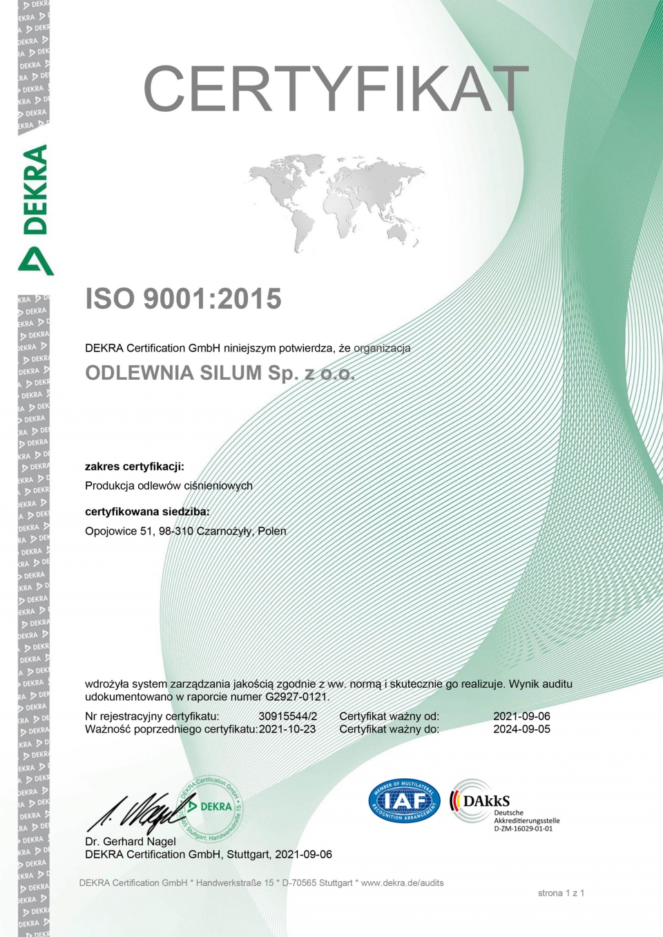 Certyfikat ISO 9001 - Odlewnia SILUM